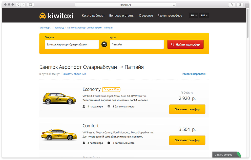 Kiwitaxi.ru — это метапоиск дешевых вариантов трансфера в 69 странах мира и одновременно заказ такси — от скромного минивена для дружной семьи до комфортабельного BMW 7 серии для VIP персон.