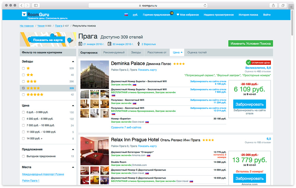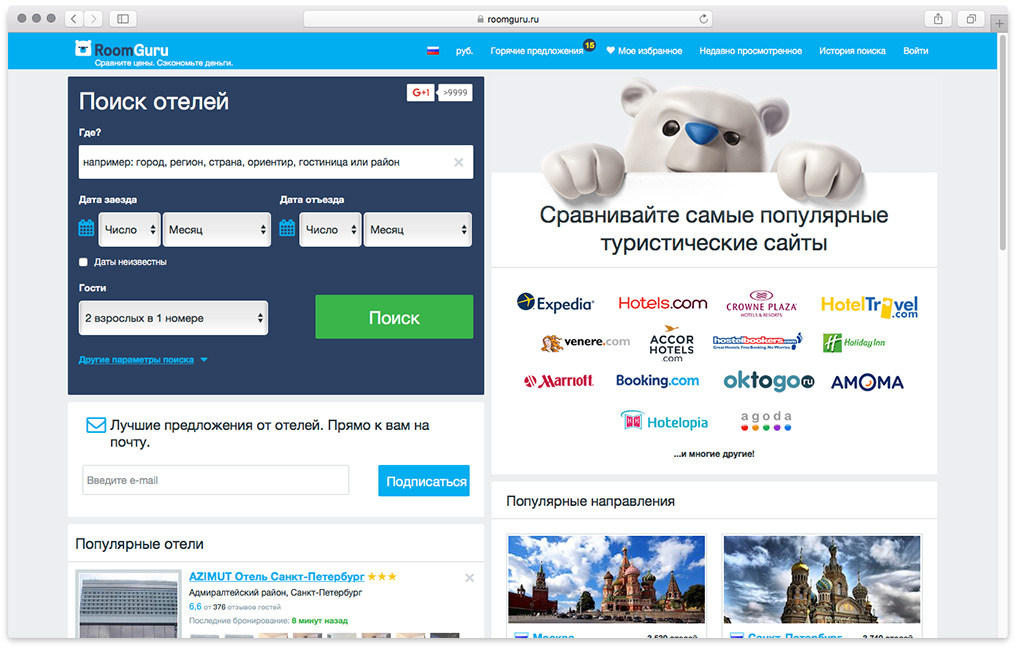 Просто? Просто. RoomGuru — это метапоисковик по онлайн-сервисам бронирования отелей. Потратив 30-60 минут на просмотр предложенных вариантов, вы легко сможете найти, к примеру, отличный 4-звездочный отель по цене трех звезд.